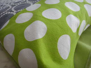 The back of the pillows is a repurposed sheet from Ikea. The comforter on the downstairs bed is white, gray, and lime green, so these really look fun with it.