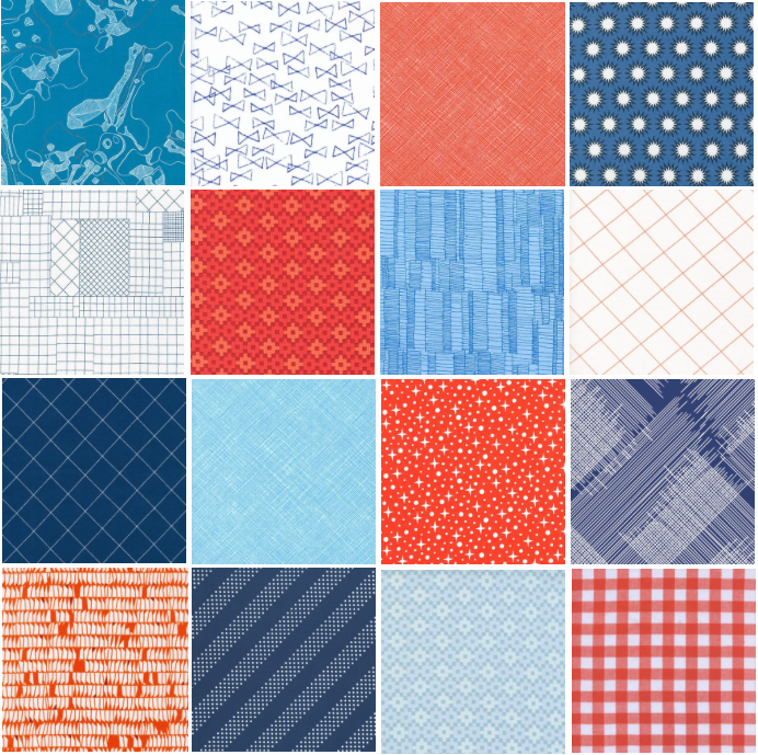 Back in April, Stash Fabrics announced a new competition they called "Stash Fabrics Design Star." They'd enlisted 11 bloggers to curate fabric bundles for people who chose to join the club, but a 12th spot was left open for the winner of the competition. In the first stage, people were encouraged to curate bundles of 16 fabrics from the Stash Fabrics website. Then judges will then pick the top 12 entries to move on to the next round. Creating fabric bundles is one of the things I love most about working part time at a fabric store, so I couldn't resist joining in on the fun, but then I might have gone a bit overboard. I finally had to stop myself after 11...